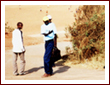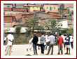 Zuerst ist ein großer Platz zu sehen, auf dem viele Kinder spielen und der sehr staubig und uneben ist. Dort gibt es auch zwei alte Fußballtore.
