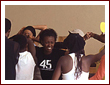 Imbuto-Gruppe im Paddler-Einheitslook die T-Shirts an die Jugendlichen von Kimisagara. Dies stärkt das Gefühl einer gemeinsamen Identität und der